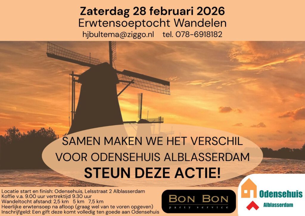 Het Odensehuis Alblasserdam is op maandag, dinsdag en donderdag open van 10:00 uur tot 15:00 uur.